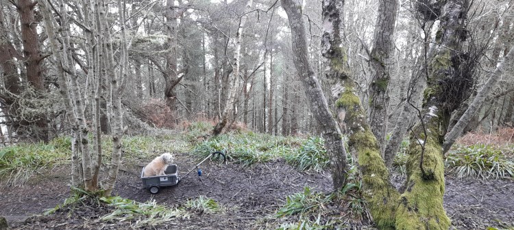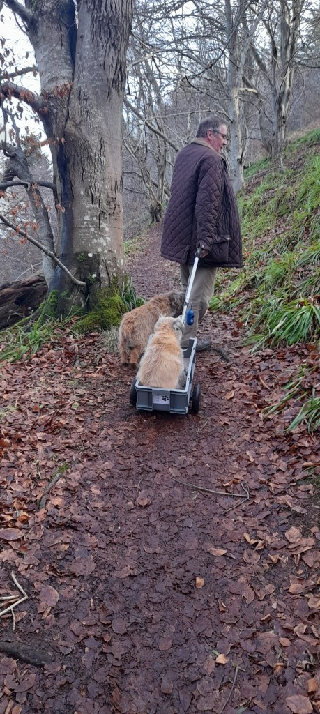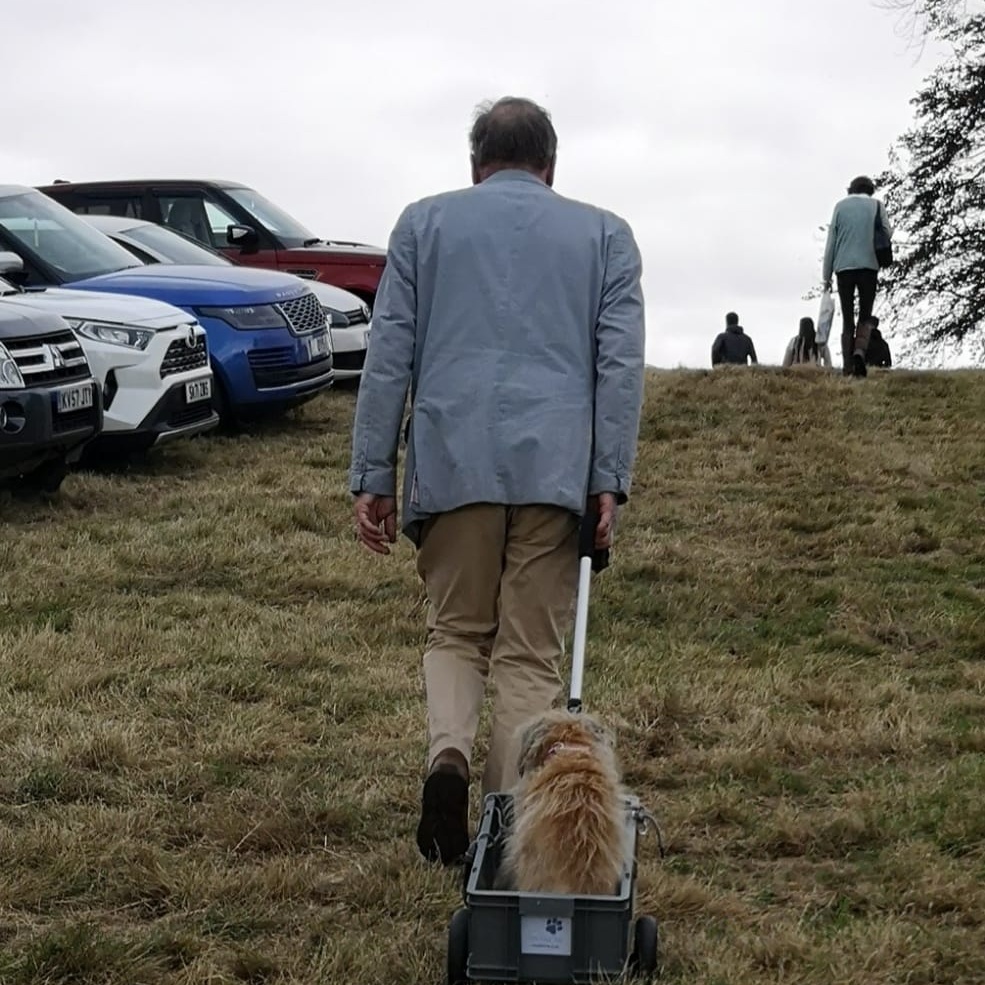 We developed the Dug Tug to allow our now sixteen year old Border Terrier Cassia to still join us on walks. Weighing just 3kg and able to go over pretty much any ground it is not hard to use.